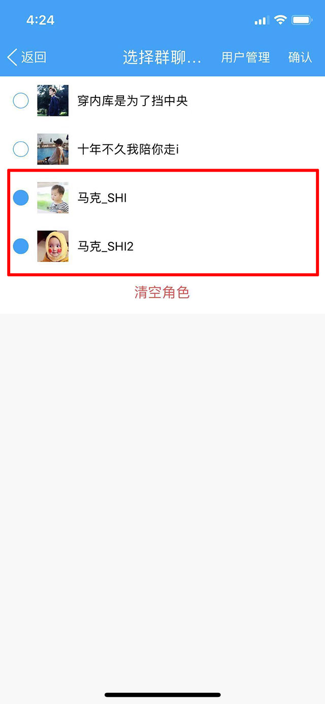 3.选择群人员,添加右上角确认按钮