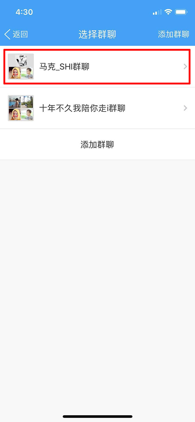 4.添加完成后选择要聊天的群,点击进去